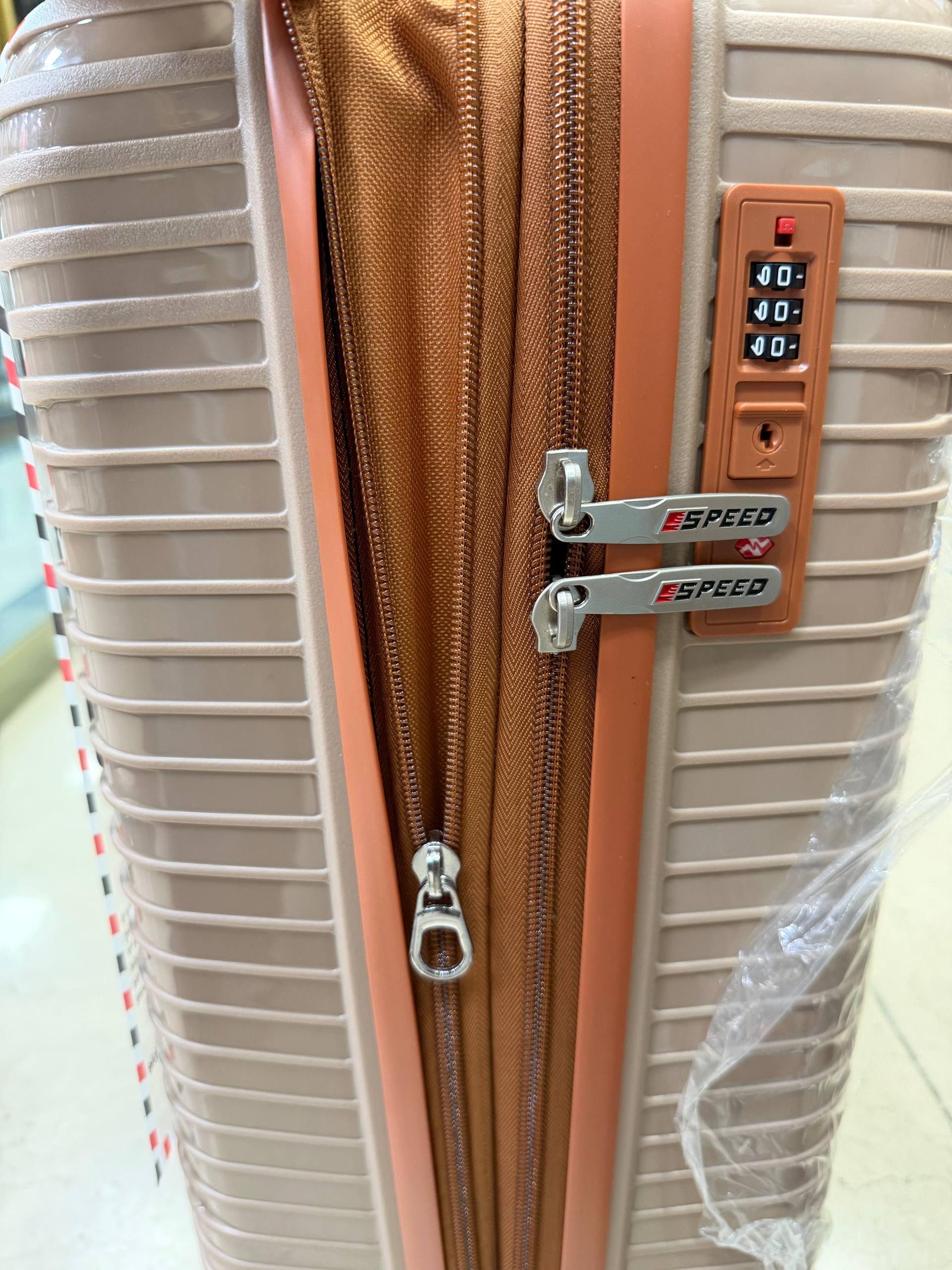 چمدان speedدر 4سایز مختلف رنگبندی چرخ فول 360 روان4چرخ دسته تراوولی آلومینیومی سرزیپ فلزی مارک داری قفل زیپ افزایش حجم زیپ دوبل استر خارجي اعلا بند فیکس خارجی داخل 4سایز